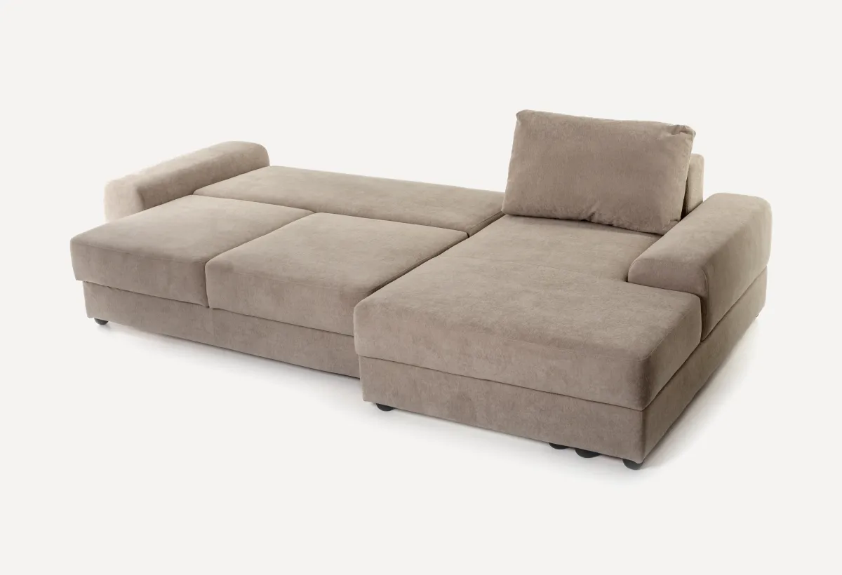 Диван Андрэа — это модульная система, которую вы собираете под себя. Хотите компактный прямой диван? Пожалуйста. Нужна большая угловая конструкция с местом для хранения? Тоже без проблем. Внешне — строгий минимализм. Никаких завитушек и лишнего декора, только прямые линии и простая геометрия. Благодаря этому он одинаково хорошо смотрится в современной гостиной, квартире-студии или даже спальне. Добавьте сюда детали из скандинавского стиля и лофта — получится мебель, которая не будет спорить с интерьером, а станет его аккуратной частью. Внутри — добротный каркас из ДСП и фанеры, пружинный блок «змейка» и многослойный поролон (жесткий, плотный, сверху — лотекс и холкон). То есть диван рассчитан на ежедневную нагрузку. Производитель заявляет до 110 кг на одно посадочное место и 140 кг на спальное. В общем, сделано на совесть. Соединяются модули между собой обычными болтами — ничего не будет разъезжаться.