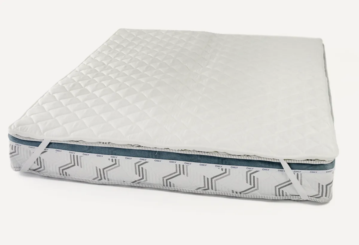 Топпер выполнен из гипоаллергенных и экологичных материалов. Фиксируется за счет креплений из резинок с четырех сторон.